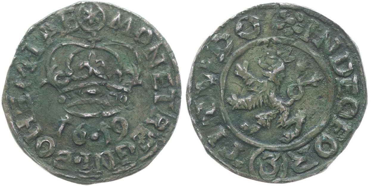 České stavy - 3 Krejcar 1619, Kutná Hora - Hölzl 20 mm, 1,48 g, Nech.32