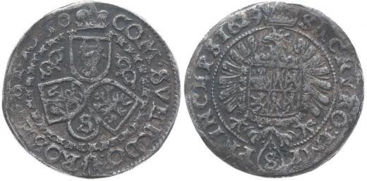 Albrecht z Valdštejna - 3 Krejcar 1629, Jičín-Zaháň Sn (?) 20,5 mm, 3,28 g, Nech.91