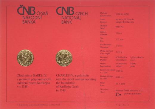 Karta (certifikát) pro minci 1000 Kč 1998 - Karel IV._dr.znečišť.