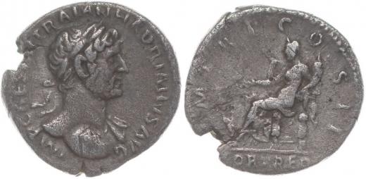 AR Denár, Rv:"P.M.TR.P.COS.III.", sedící Fortuna zleva S.995pod., K.32.86.4, RIC.42_dr.vyl.okr.