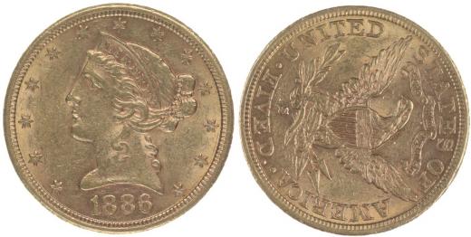 5 Dolar 1886 S - hlava Liberty, Y.56, 8.333 g