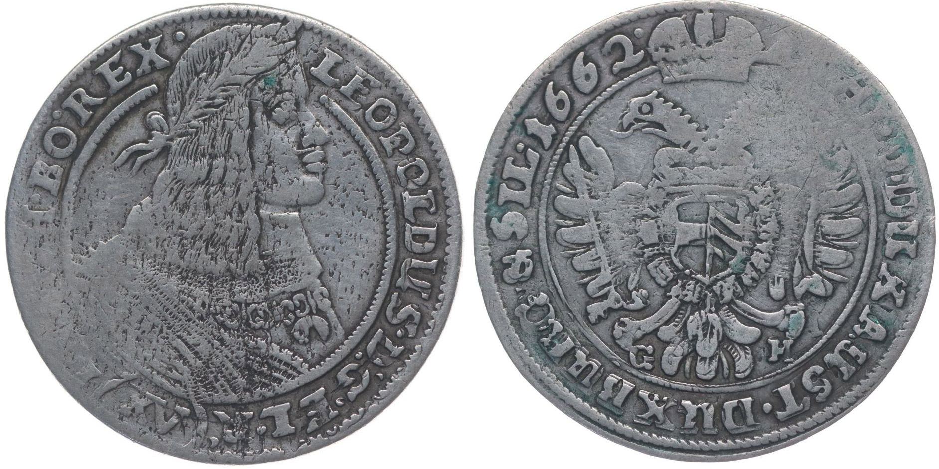 XV Krejcar 1662 G-H, Vratisl.-Hübner, Nech.671, Höll.62.1.3_č.ned.