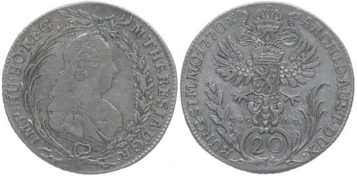 20 Krejcar 1770 EvS - AS, Praha, Nov.55, Her.934