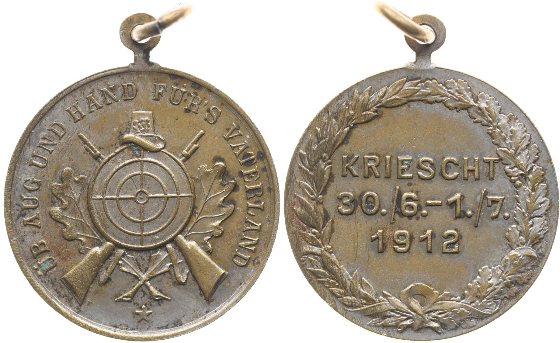 Kriescht (Krzeszyce v Polsku) - na střelby 30.6 - 1.7.1912 Terč překřížený puškami, něm.opis /3řádk.nápid ve věnci Postř.bronz 29 mm_orig.raž.ouško