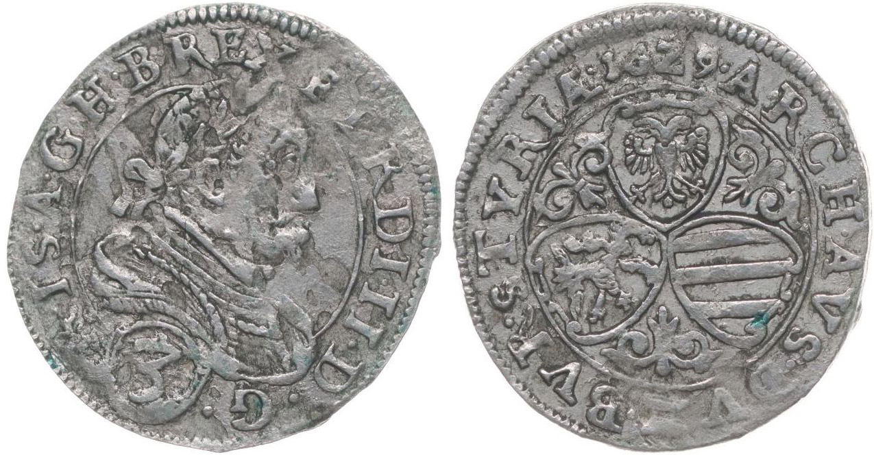 3 Krejcar 1629, Štýrský Hradec, M-A.126 (tab.17/21), Her.1086