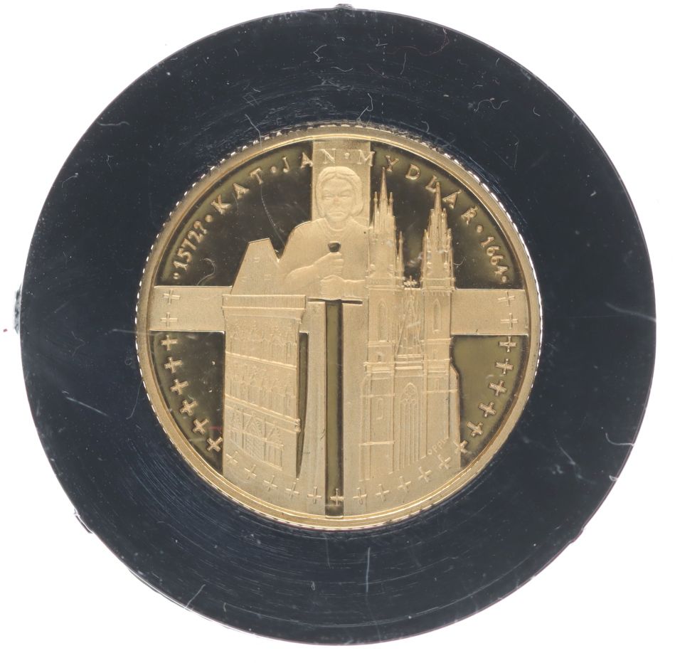 Kat Mydlář, b.l. z cyklu Magická Praha Sign.Oppl, Punc.585, Au 18 mm, 2 g_orig.kapsle