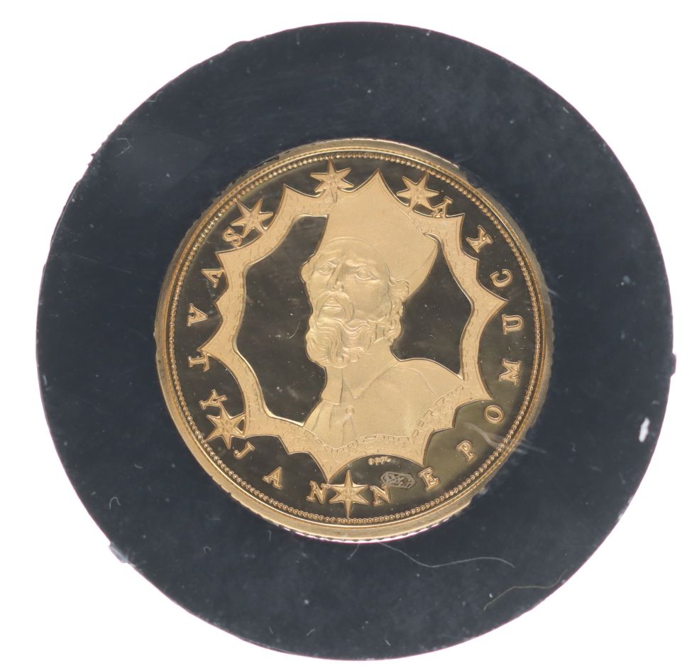 Svatý Jan Nepomucký, b.l. z cyklu Magická Praha Sign.Oppl, Punc.585, Au 18 mm, 2 g_orig.kapsle