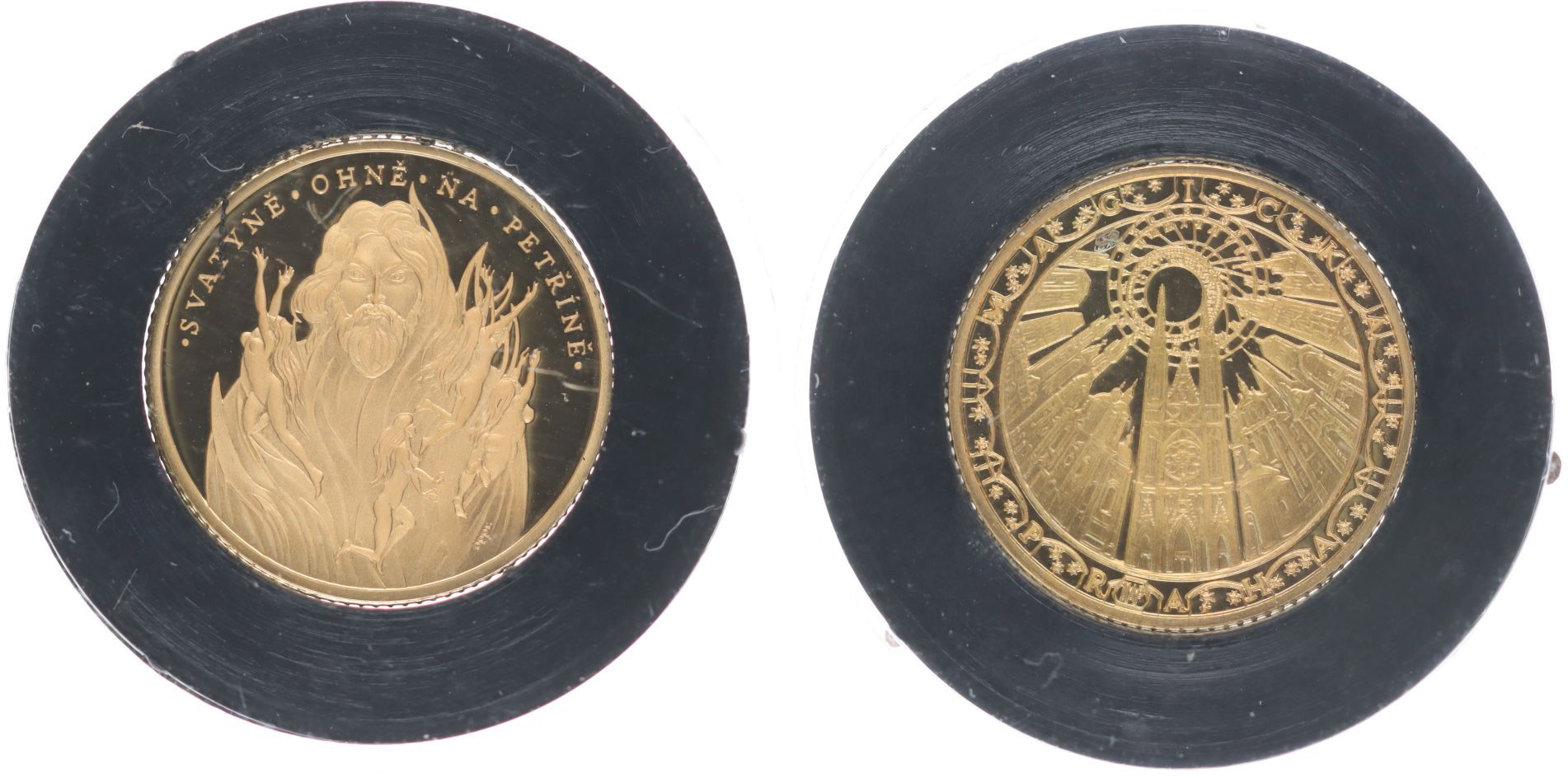 Svatyně ohně na Petříně, b.l. z cyklu Magická Praha Sign.Oppl, Punc.585, Au 18 mm, 2 g_orig.kapsle