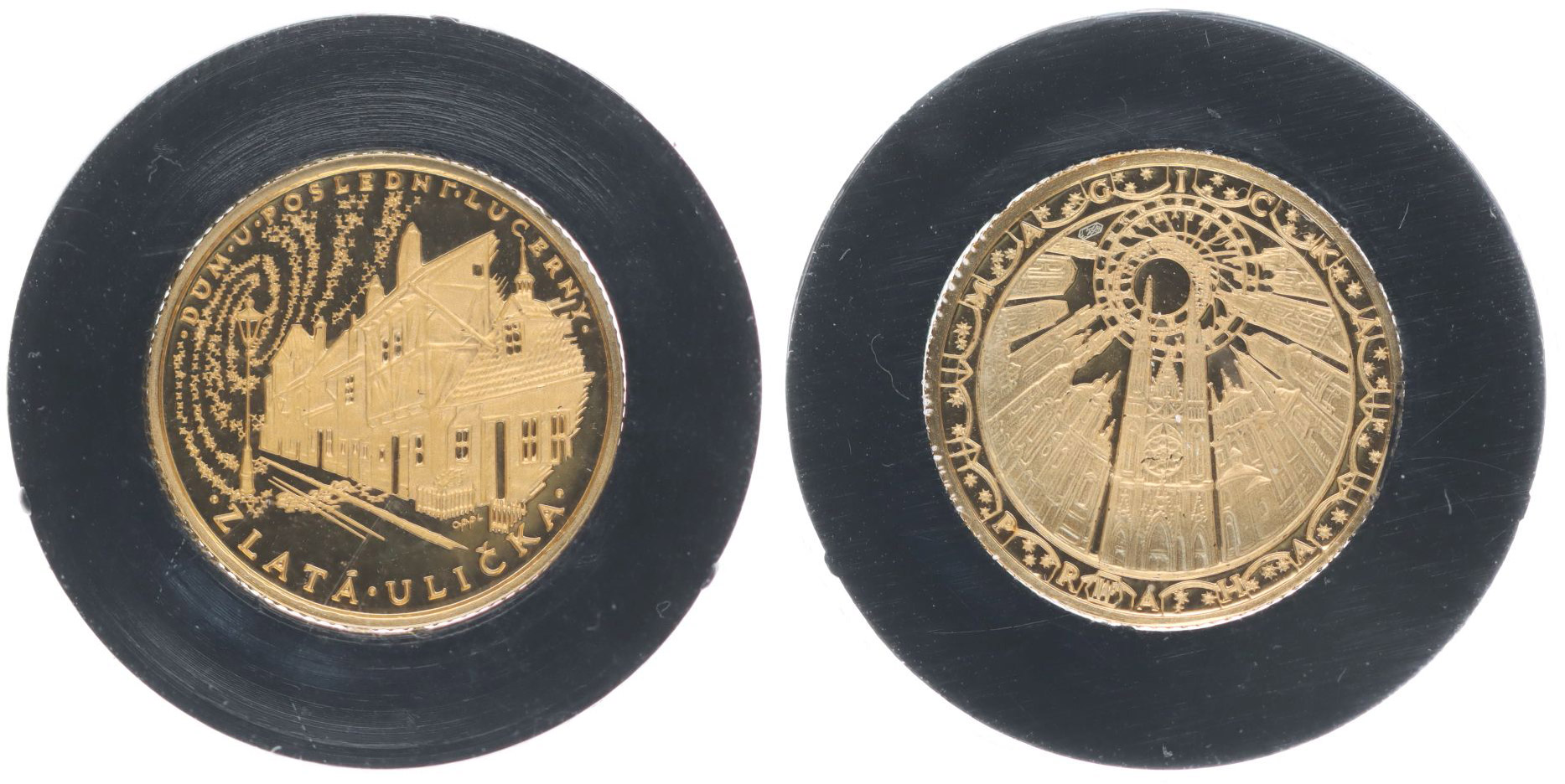 Zlatá ulička, b.l. z cyklu Magická Praha Sign.Oppl, Punc.585, Au 18 mm, 2 g_orig.kapsle