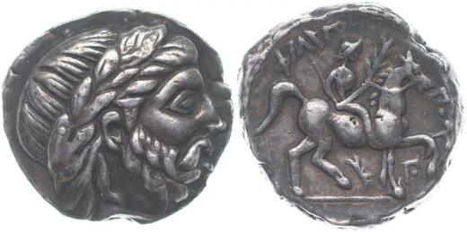 AR Tetradrachma - typ Audoleon, vousatá hlava zprava / jezdec na koni s ratolestí zprava, opis, Kost.706pod., Göbl.tab.32, č.402/1v, SG.203 _R!