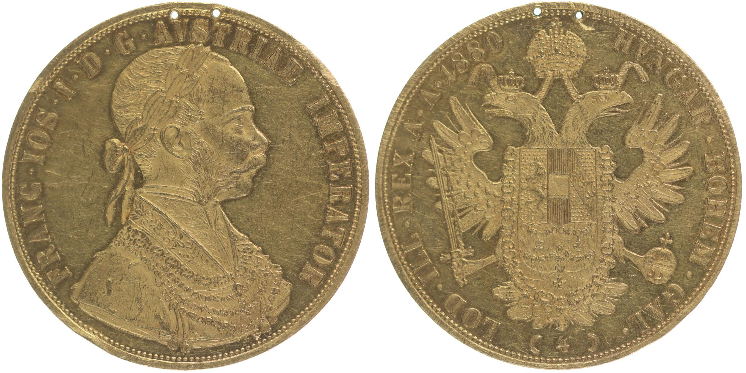 4 Dukát 1880 b.zn._dvě dírky po korunce