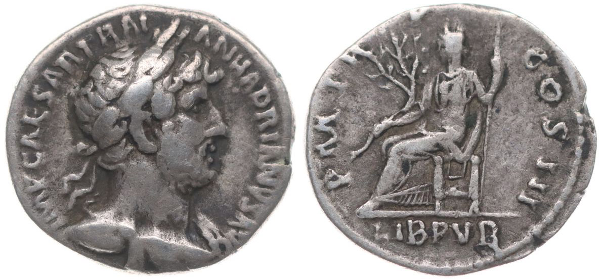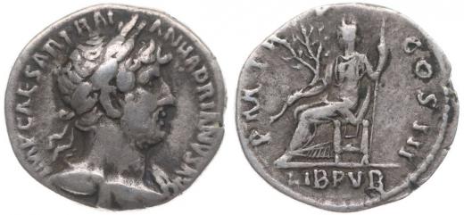 AR Denár, Rv:"P.M.TR.P.COS.III.", sedící Libertas zleva S.993pod., K.32.93.8, RIC.122