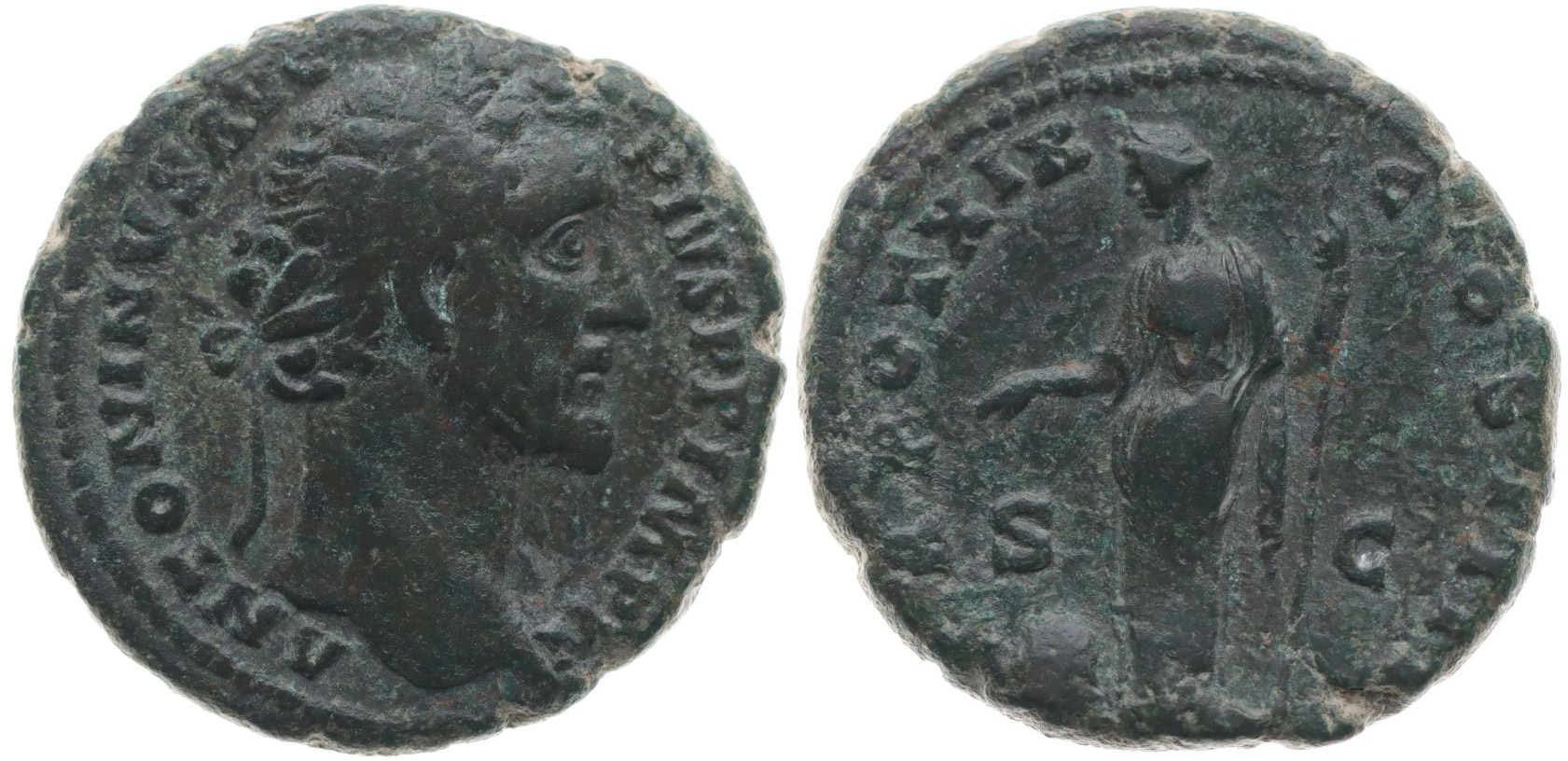 AE Dupondius, Rv:"TR.POT.XIX.COS.IIII.S.C.", stojící Providentia, zleva (rok 156-157), S.1185, C.978, K.35.289.5, RIC.943