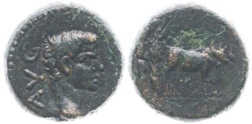 AE 16,5 mm, Rv: dva kolonisté se dvěma voly, podob.SGI.48, BMC.86