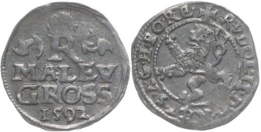 Malý groš 1592, Praha-Ercker, HN.21 (opis 6d), Ja.7c_dr.ned.