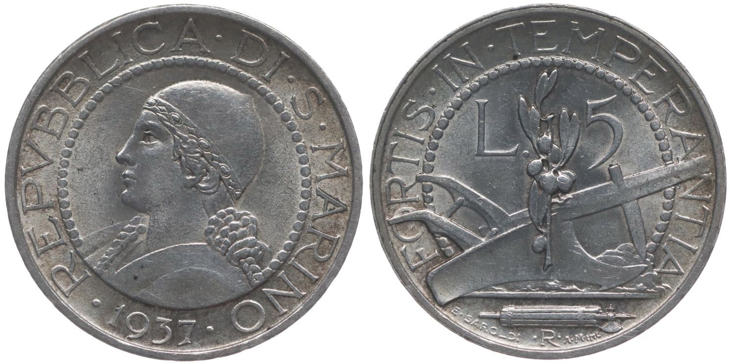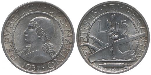 5 Lira 1937 R, KM.9