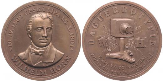 P.Soušek - Wilhelm Horn - k 200.výr.narození 1809 - 2009 Poprsí čelně mírně, opis / fotografický přístroj, opis DAGUERROTYPIE 2řádk.opis, Sign.Sou, Bronz 40 mm, 32,3 g, náklad 50 ks, MF.A4/5c