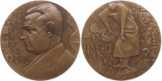 S.Mikuláštík - pamětní medaile, b.l. Poprsí zleva, 7řádk.nápis / stylizovaná postava slévače, 4řádk.nápis Sign.SM, Bronz patinov. 80 mm, 191,70 g, Nov.04.067a