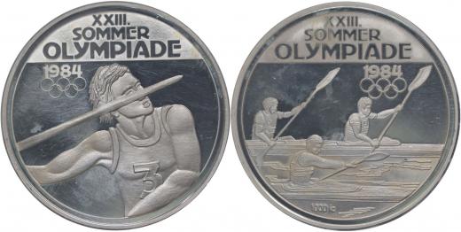 XXIII. letní OH Los Angeles 1984, kajakáři / oštěpař Punc.1000, Ag 36 mm, 15 g_orig.kapsle