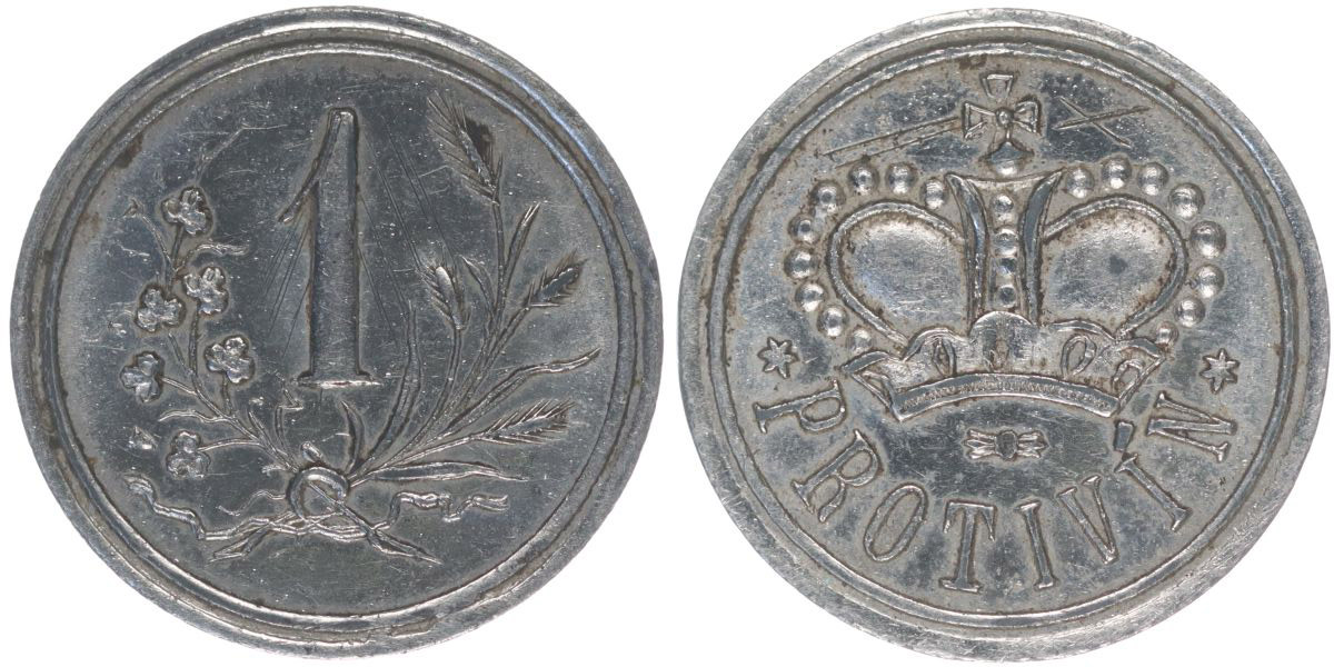 Protivín - knížecí schwarzenberský pivovar - "1" litr, Knížecí koruna, opis, Ponikl.Zn 18,5 mm, Lik.0410