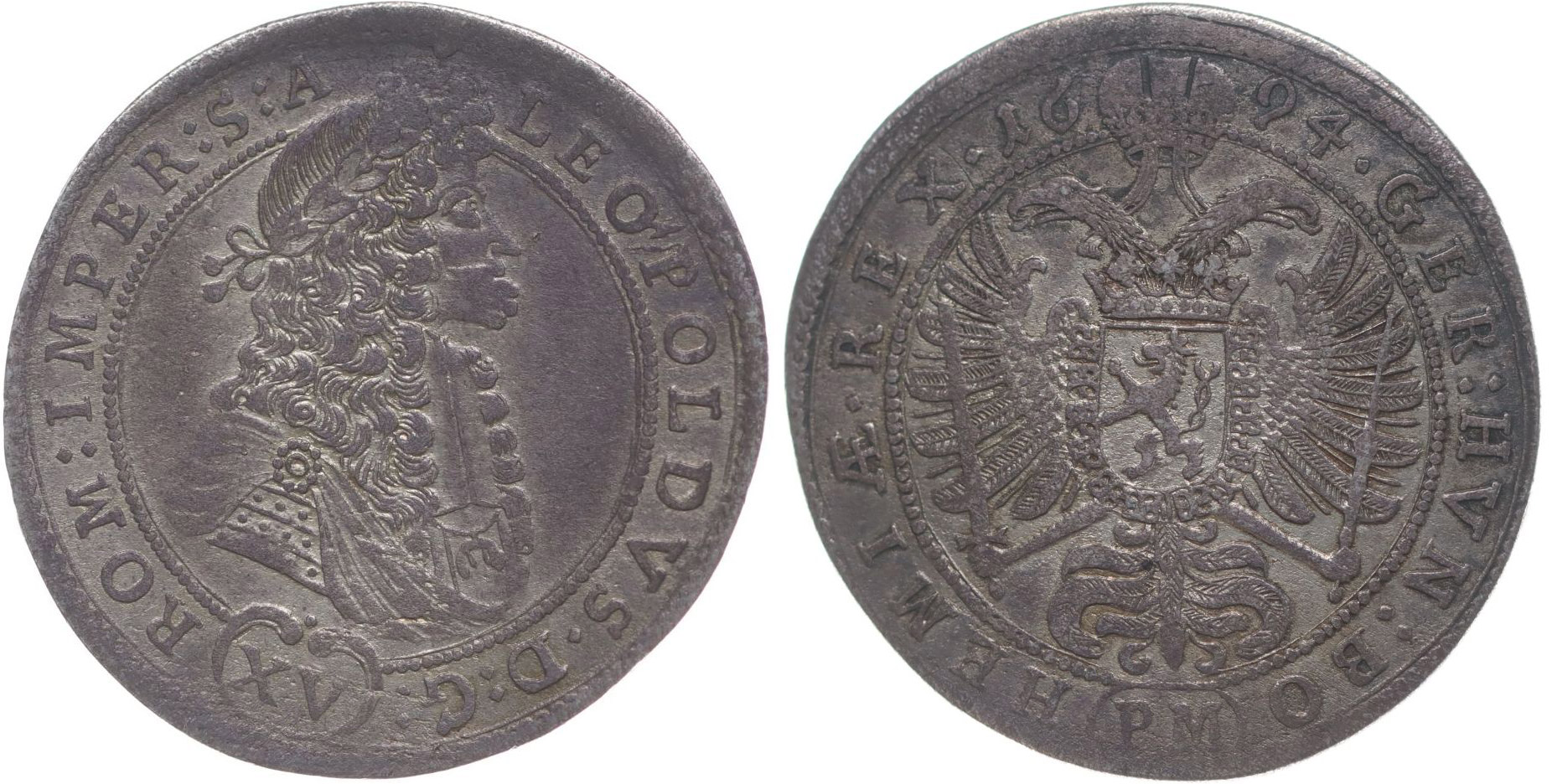 XV Krejcar 1694, Praha-provizor., Nech.154, Höll.94.2.1_č.ned.