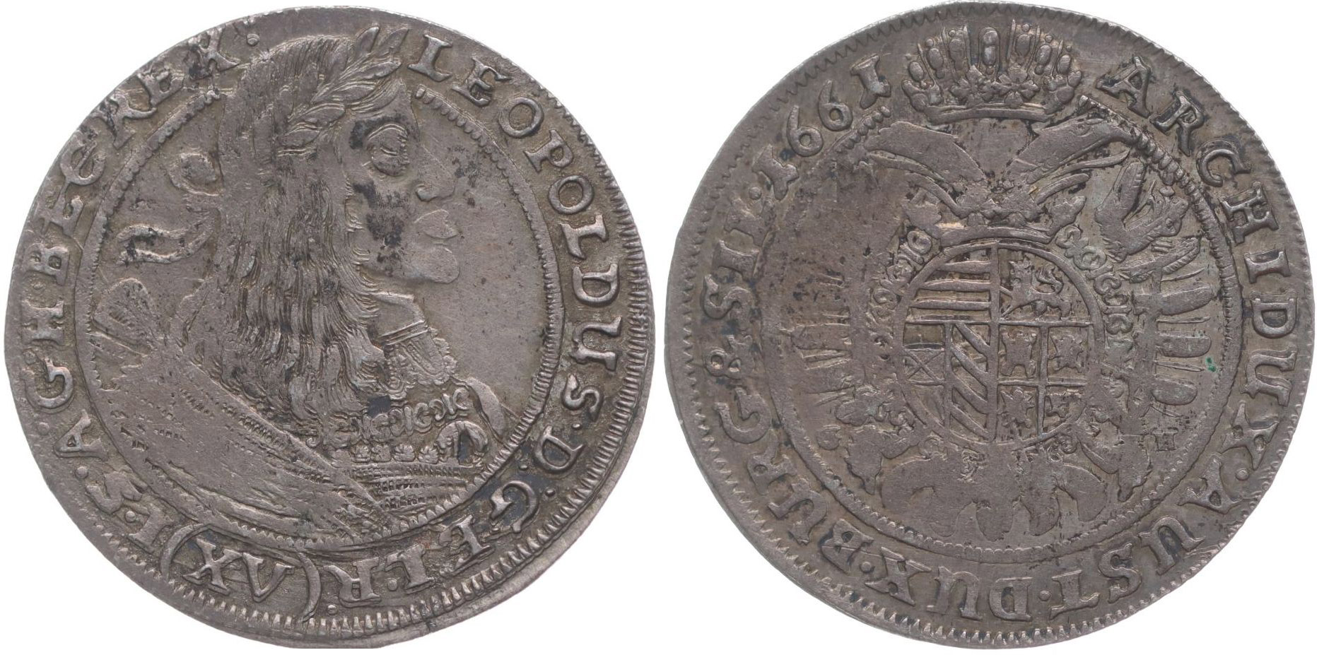 XV Krejcar 1661 G-H, Vratisl.-Hübmer, Nech.670, Höll.61.1.4 _č.ned. v rev.