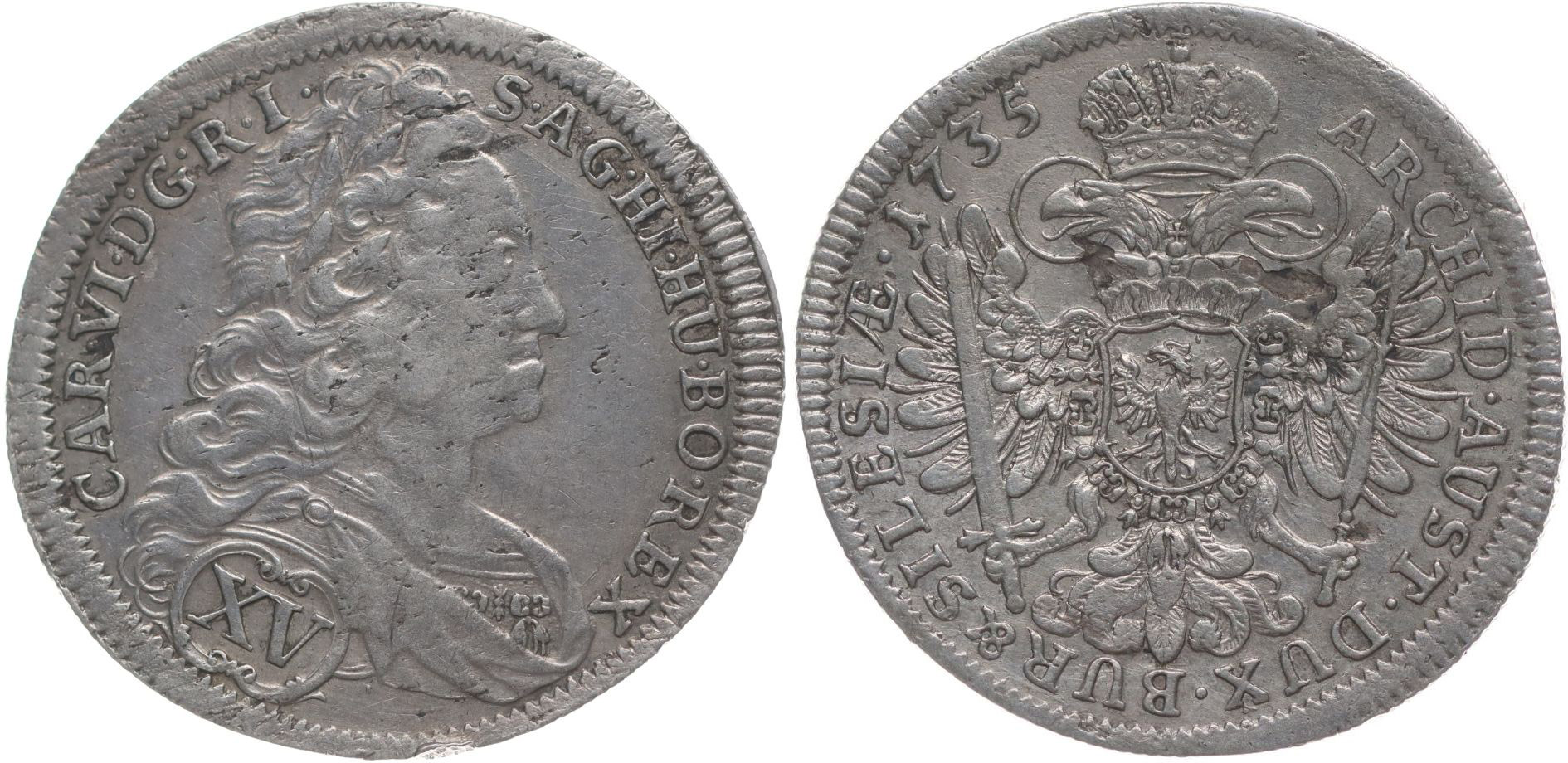 XV Krejcar 1735, Vratislav, MKČ.1914, Her.649, Fr.912_č.ned. v av.
