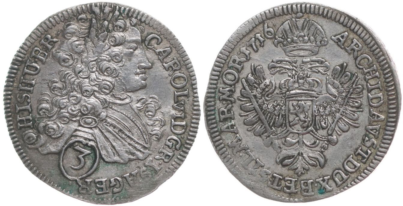 3 Krejcar 1716, Praha-Scharff, MKČ.1830, J.9b