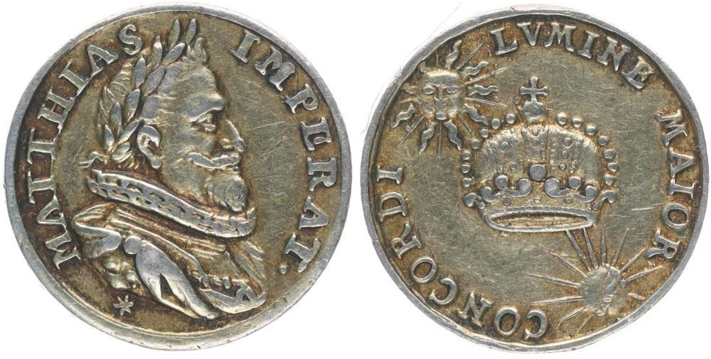 Nesign. - medaile b.l. (1700) ze souboru miniaturních portrétních medailí z r.1700, poprsí zprava, opis / říšská koruna, opis, b.l. Ag 16 mm, 2,26 g, Nov.XXI/A-2a_R!