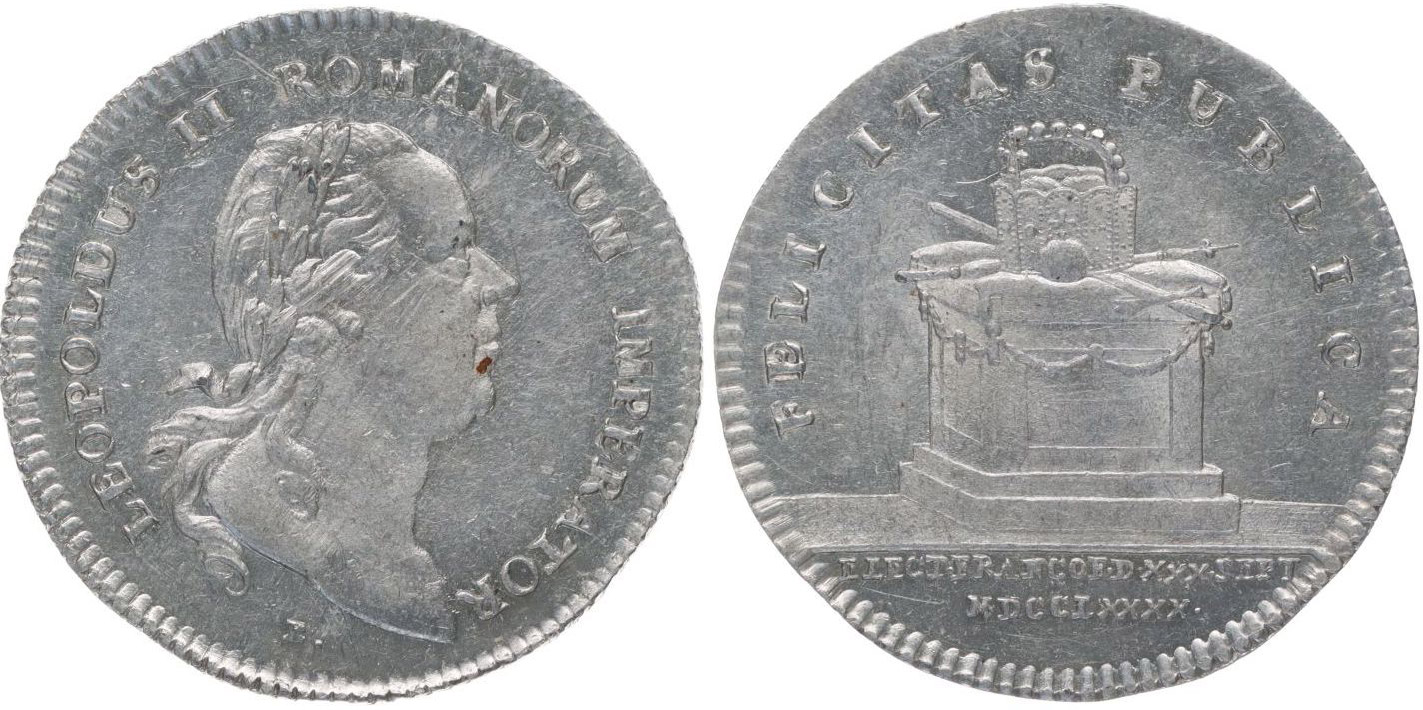 Menší peníz na volbu ve Frankfurtu, 30.IX.1790 Poprsí zprava, opis / korunovační insignie na oltáři, opis a nápis, Sign.K, Ag 22 mm, 1,97 g, Mo.2207, Nov.XVI/D-2b