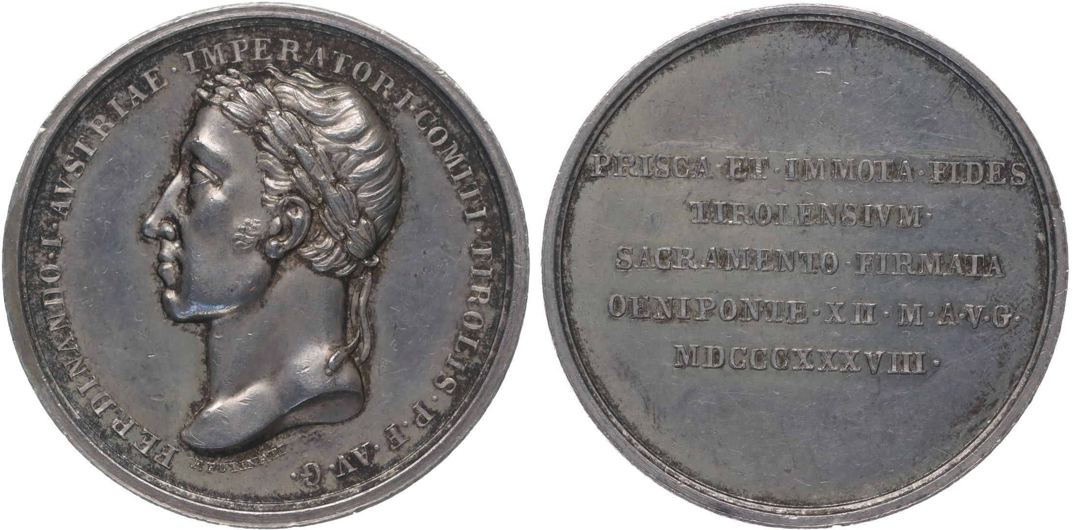 F.Putinati - medaile na holdování v Tyrolsku 1838#Ag Portrét zleva, opis / 5 řádk.nápis, Sign., Ag 34 mm, 22,22 g, Mo.2575, Nov.XVIII/F-1b, LG.XII/320, Ho.3632, We.8685_R! tém.