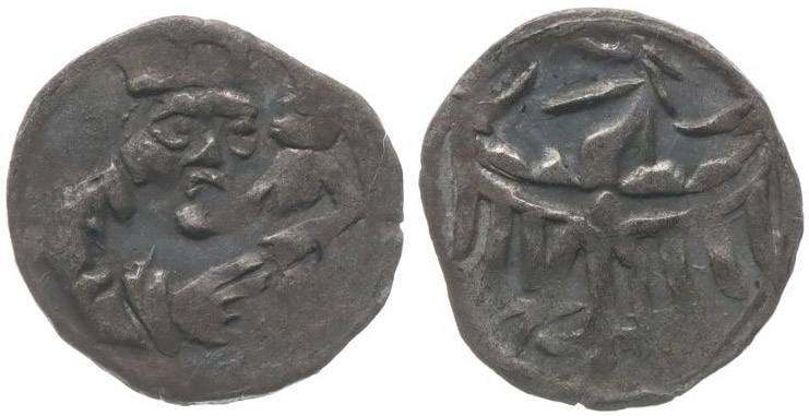 Haléř b.l., Poprsí sv.Petra / slezská orlice, SJ.75/1, Sa.180/71, Kop.8656, delší prsty u ruky
