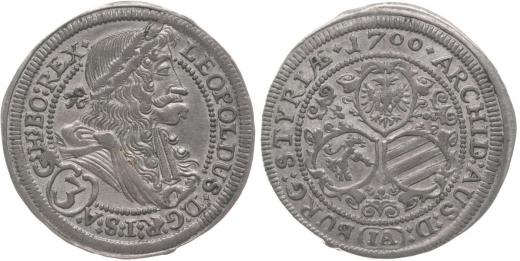 3 Krejcar 1700 I-A, Štýrský Hradec-Aigmann, Nech.2237, Her.1364