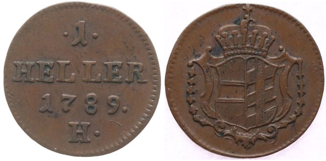 Cu Haléř 1789 H, Günzburg (pro Přední Rakousko) P.55, J.32, He.459_R!