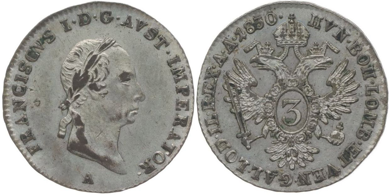 3 Krejcar 1830 A, Her.995