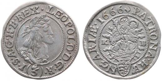3 Krejcar 1666 KB, Nech.1209, Hus.1465, Her.1581_dr.ned.