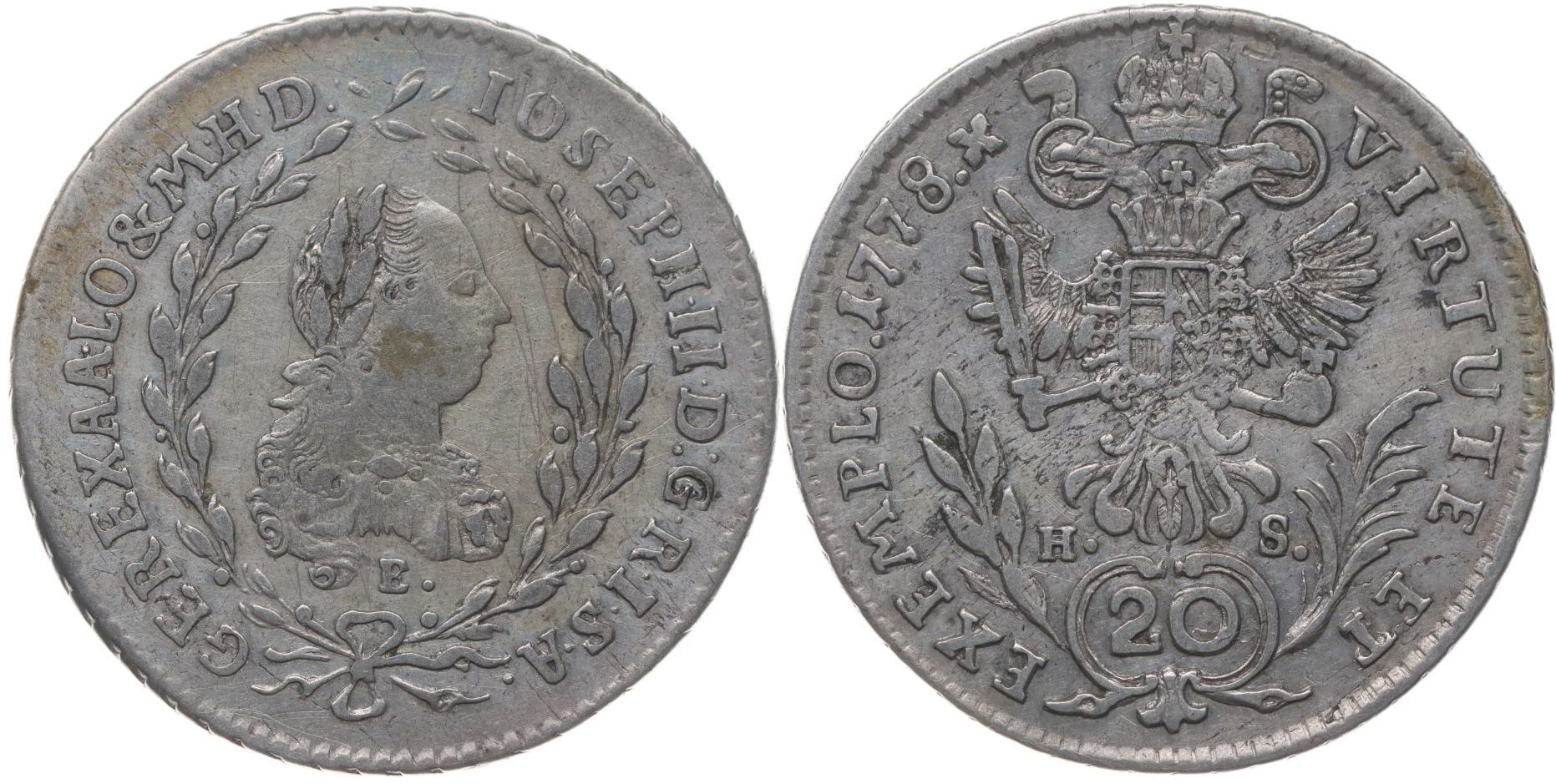 20 Krejcar 1778 E/H-S, Karlovský Bělehrad, P.9, Her.193