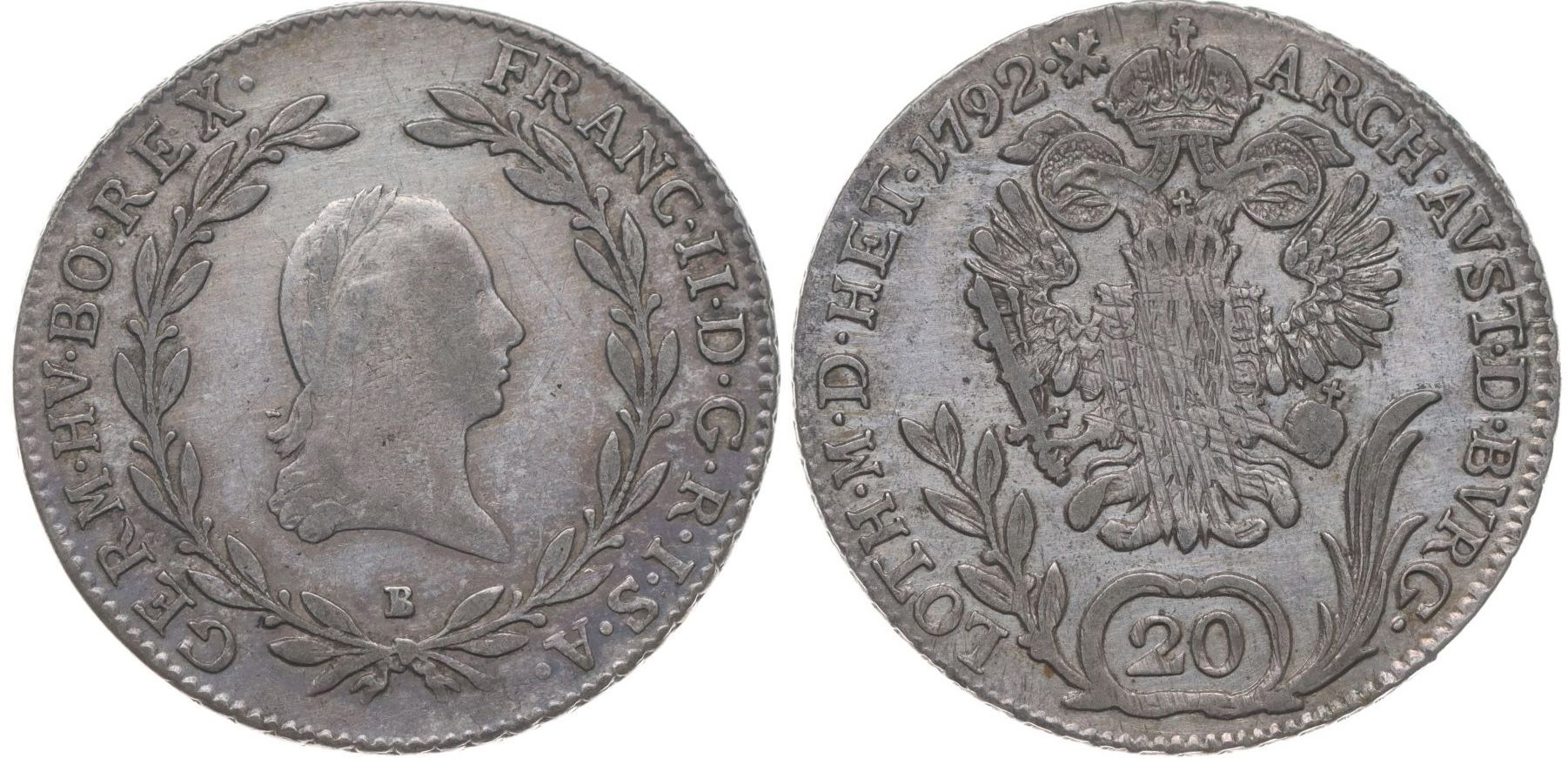 20 Krejcar 1792 B_dr.just. v rev. R!