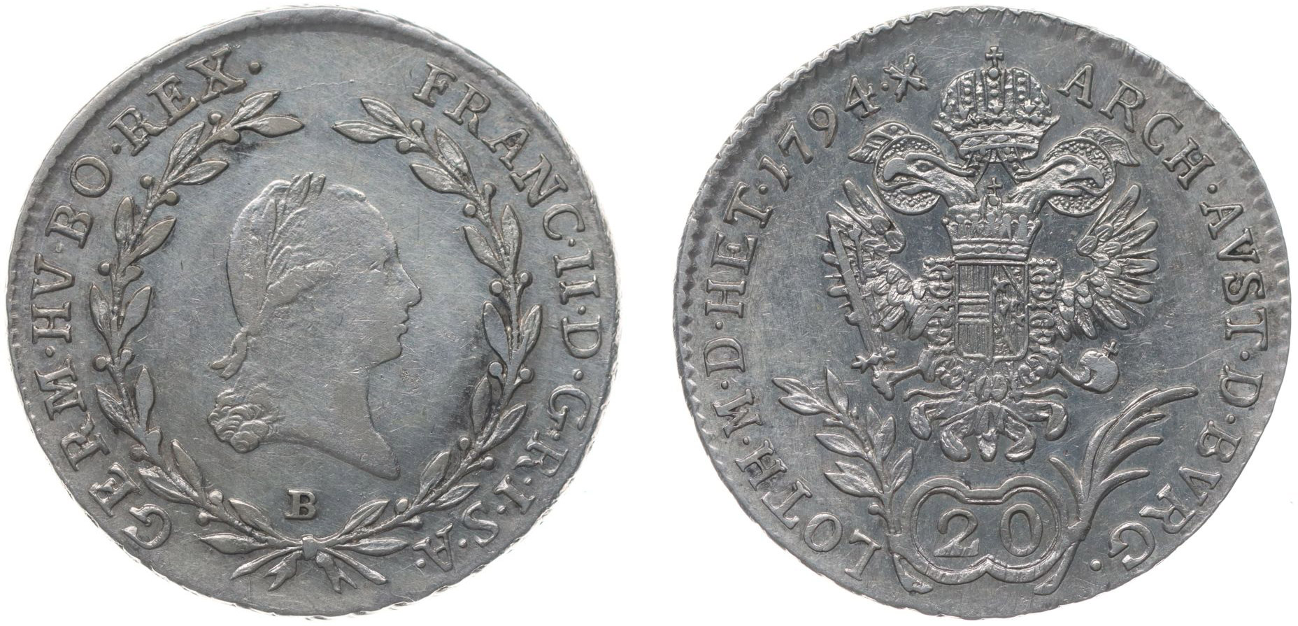 20 Krejcar 1794 B - velké "B", jiný tvar číslice "4"