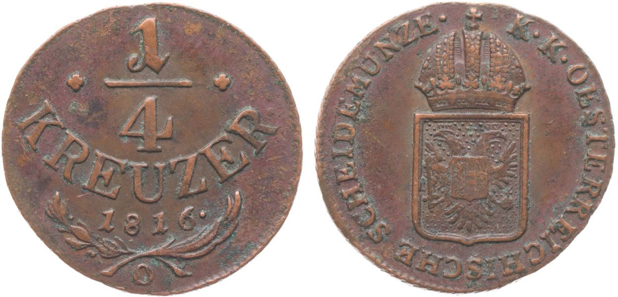 Cu 1/4 Krejcar 1816 O, minc.Oravica