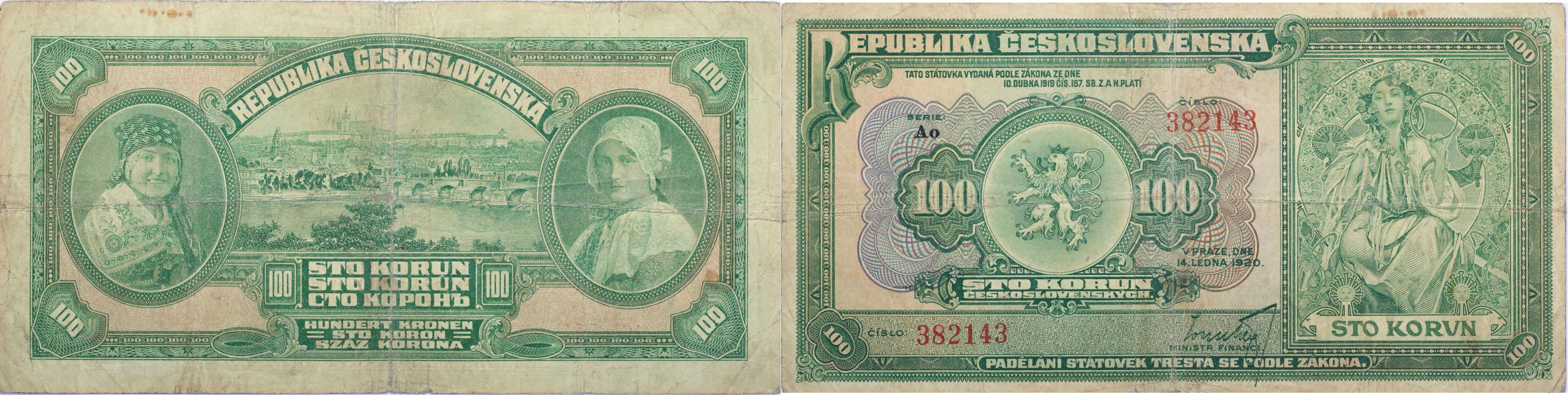100 Kč 1920, série Ao, B.16b, Hejz.16b_"neperf."