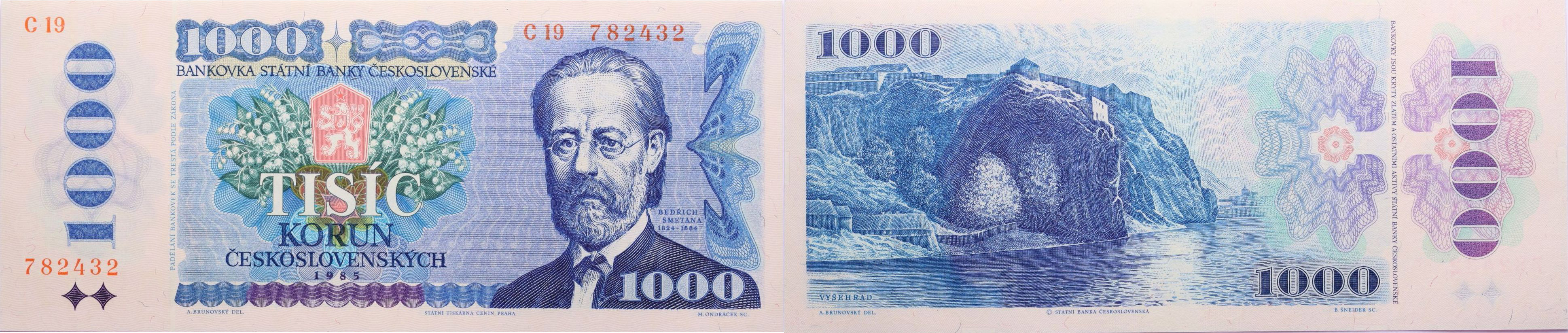 1000 Kčs 1985, sér.C19, B.102a, Hejz.106a_"neperf."