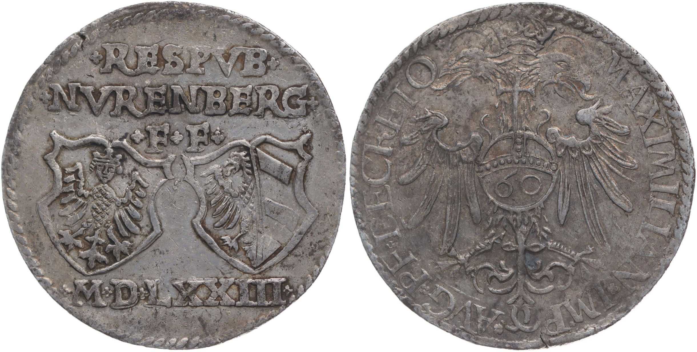 60 Krejcar 1573 s titulem Maximiliána II. Erb.17030, Reim.6958_RR!