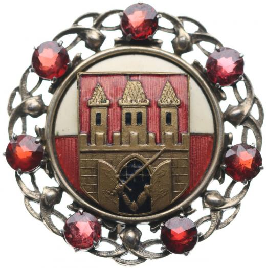 Znak města b.l., Smaltovaný, po obvodu ozdobná obruba se sedmi českými granáty, Punc.Ag 40 mm_připínací RR!