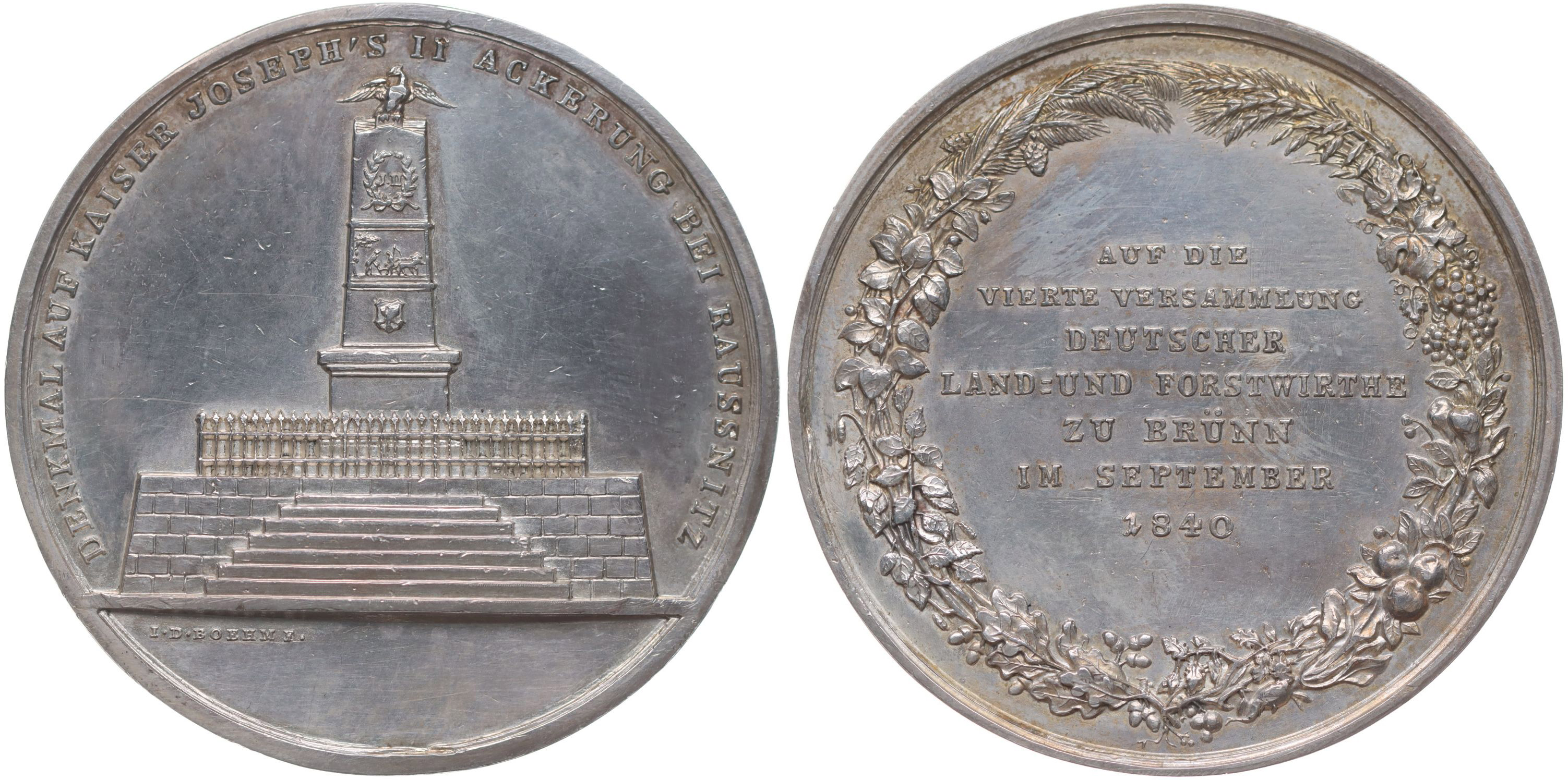 Boehm. - památník císaře Josefa II - 4. setkání německých zemědělských a lesnických hospodářů v Brně v září 1840, pomník císaře, opis / 7řádk.nápis ve věnci, Ag 47 mm, 33,54 g