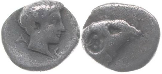 AR Hemiobol, hlava chlapce zprava / hlava berana zprava, 8 mm, 0,37 g