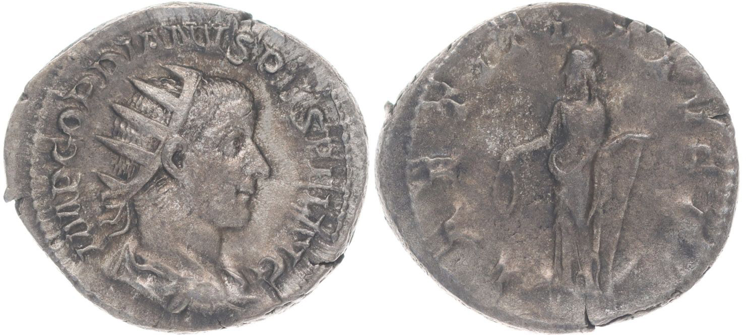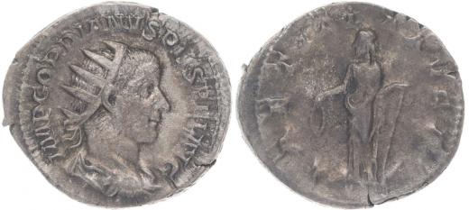 AR Antoninianus, Rv:"LAETITIA.AVG.N.", stojící Laetitia zleva S.2338, C.121, Kamp.72.19, RIC.86