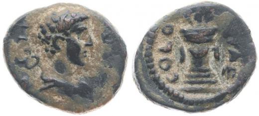AE 14,5 mm, Rv: hlava Herma (s rysy Commoda) zprava / symbol caducea, opis COLO..., 14,5 mm, 2,16 g