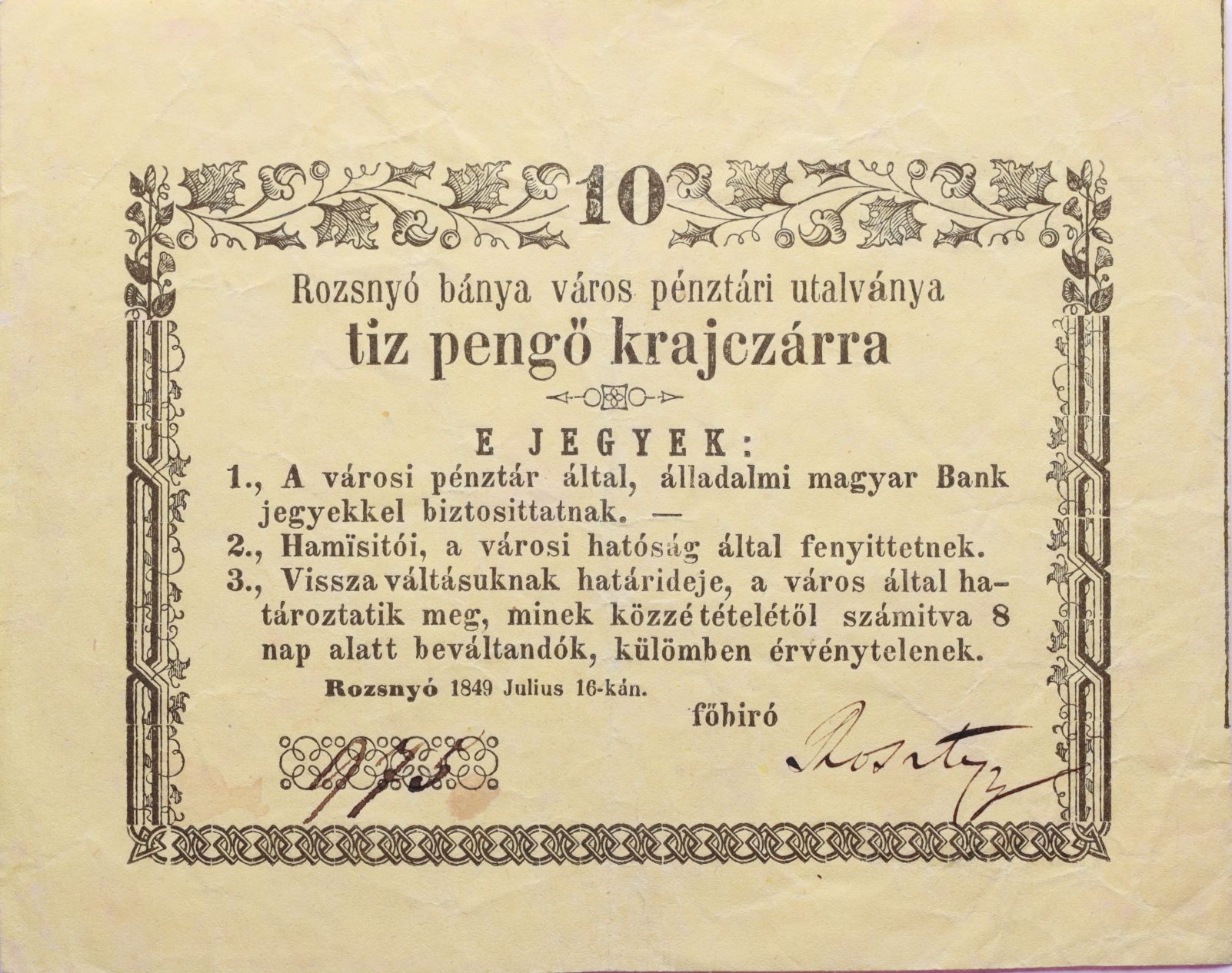 Rožňava (Rozsmyó) - 10 Krejcar 16.7.1849, č.975, Adam.Roz.1.4.2