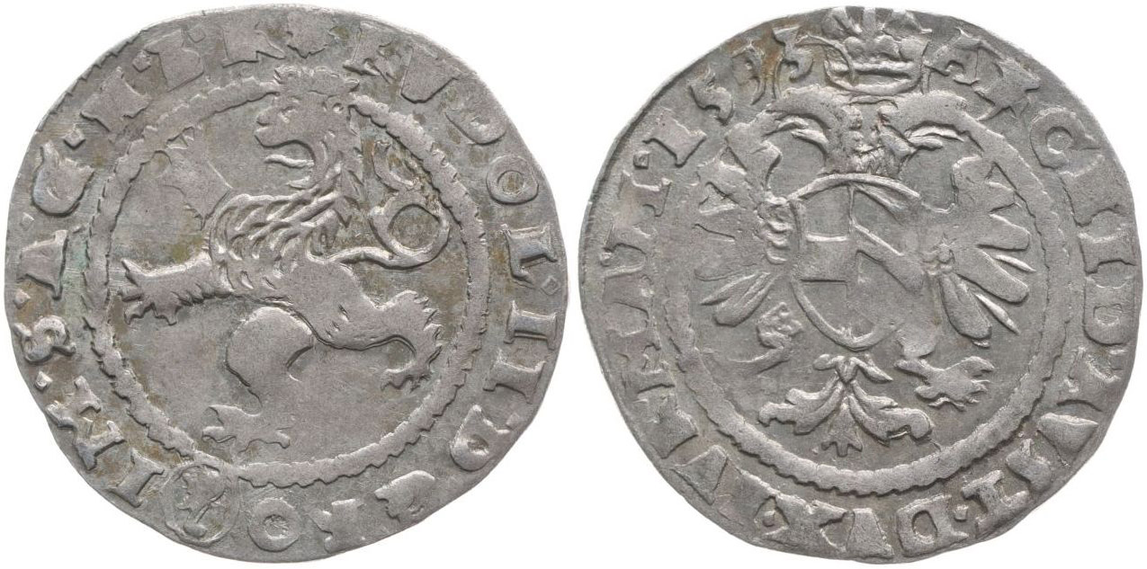 Bílý groš 1593, K.Hora-Herold, J.14a, MKČ.376_č.ned.